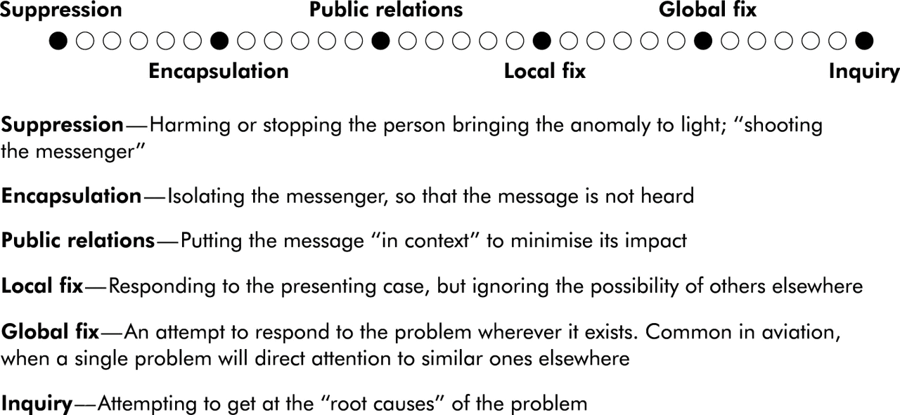 Suppression: Harming or stopping the person bringing the anomaly to light ("shooting the messenger")